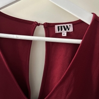 Tyylikäs viininpunainen mekko, jossa on nauha ja V-pääntie.