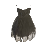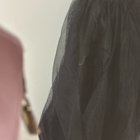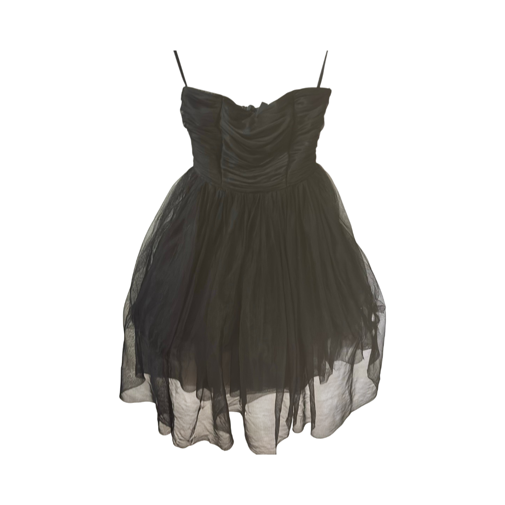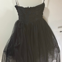 Musta tyllihelmamekko/hame, kapea vyötärö, reikiä helmassa.