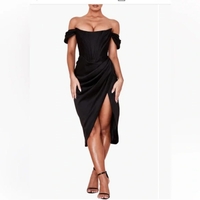 Upea käyttämätön House of CB mekko. Oon ite 160cm/45kg/65B/päästä varpaisiin xs-kokoinen ja tää on mulle auttamattomasti liian iso. Sopivampi tää ois sellaselle, joka on vähintään 165cm pitkä, jonka vyötärö on xs, rintaliivien koko ehkä 70B-D ja lantio S-M. Passeli siis kurvikkaalle keholle.