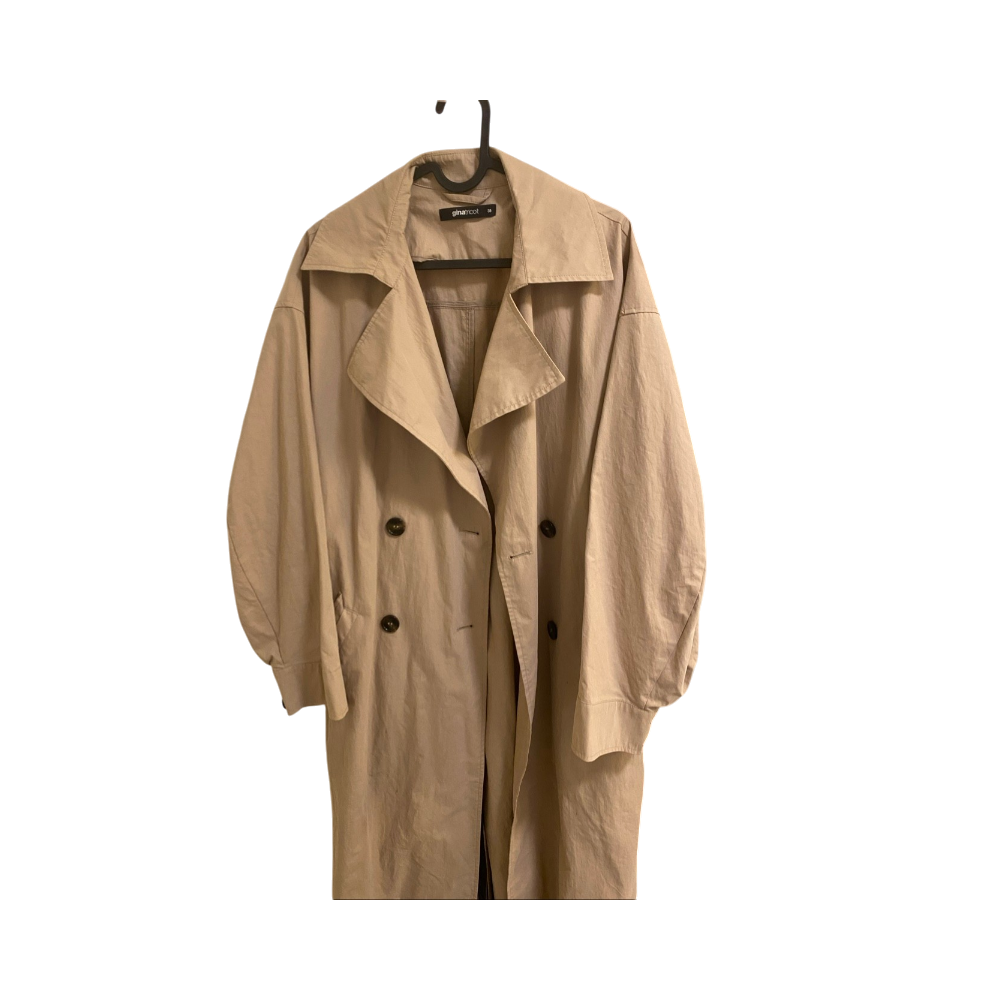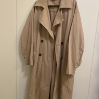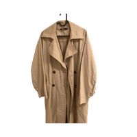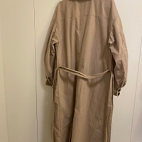 Beige, pitkä trenssi vyöllä, hyväkuntoinen.