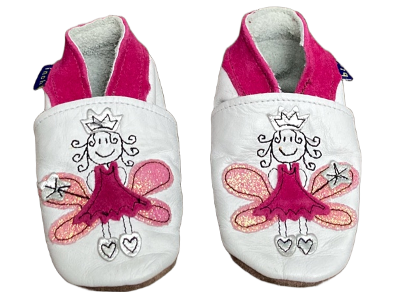 Blue Inch vaaleanpuna-valkoiset vauvan aidot nahkatossut.