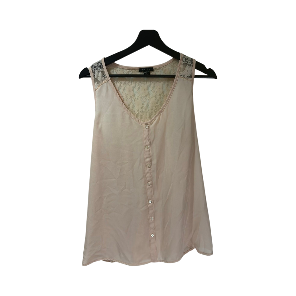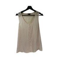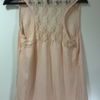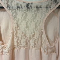 Hento vaaleanpunainen pitsitoppi, napit edessä, kevyttä kangasta.