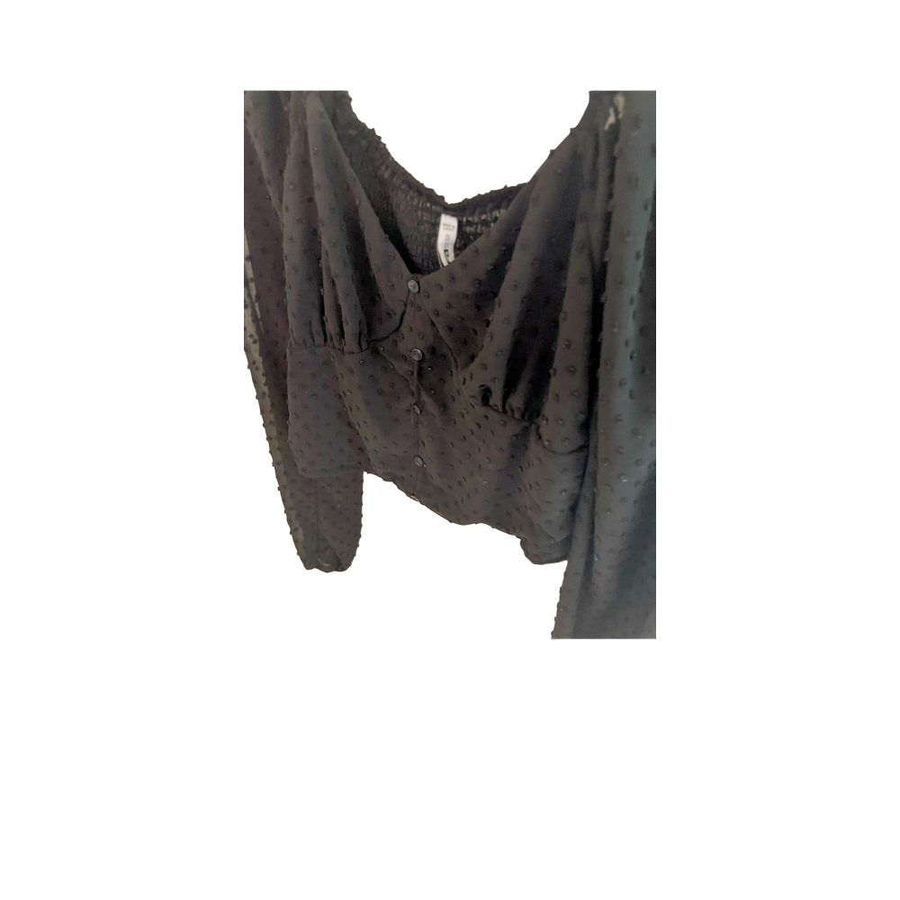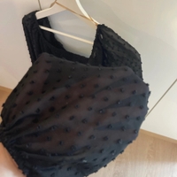 Tyylikäs ja mukava musta paita. HUOM. Keskeltä on revennyt osa ja se korjattu itse, ei näy käytössä.