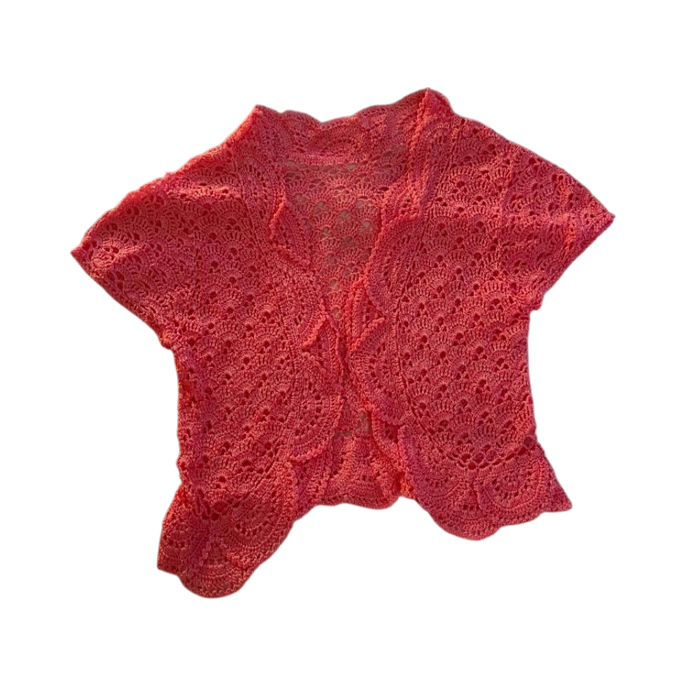 Lyhyt virkattu bolero, pitsimäinen ja kevyt.
