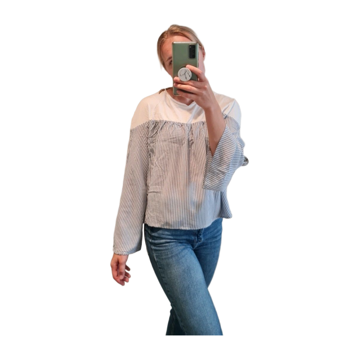 Sini-valkoraidallinen paita, leveät hihat 🩵