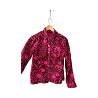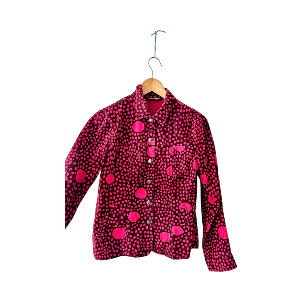 Marimekon siistikuntoinen pinkki/punainen farkkutakki. Koko 34, pituus 62cm ja kai kai mitta 47cm. 100% puuvillaa