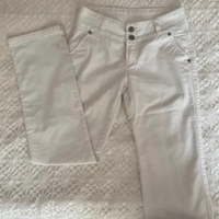 Ihanat hyväkuntoiset valkoiset lowrise farkut, joissa hieman käytön jälkiä. Sopii oargaiten xs-kokoiselle!