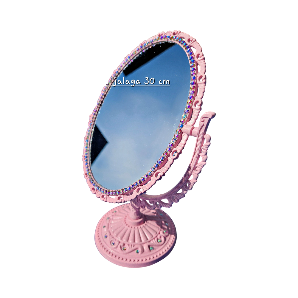 Elegant mirror with rhinestone accents, 30 cm tall.