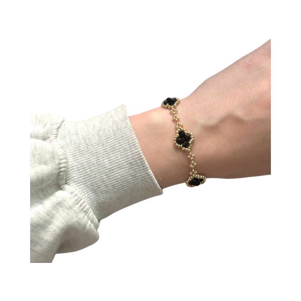 Käsintehty rannekoru helmillä. Saatavilla myös hopeisilla metalliosilla sekä hopeisilla helmillä.