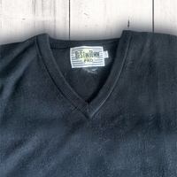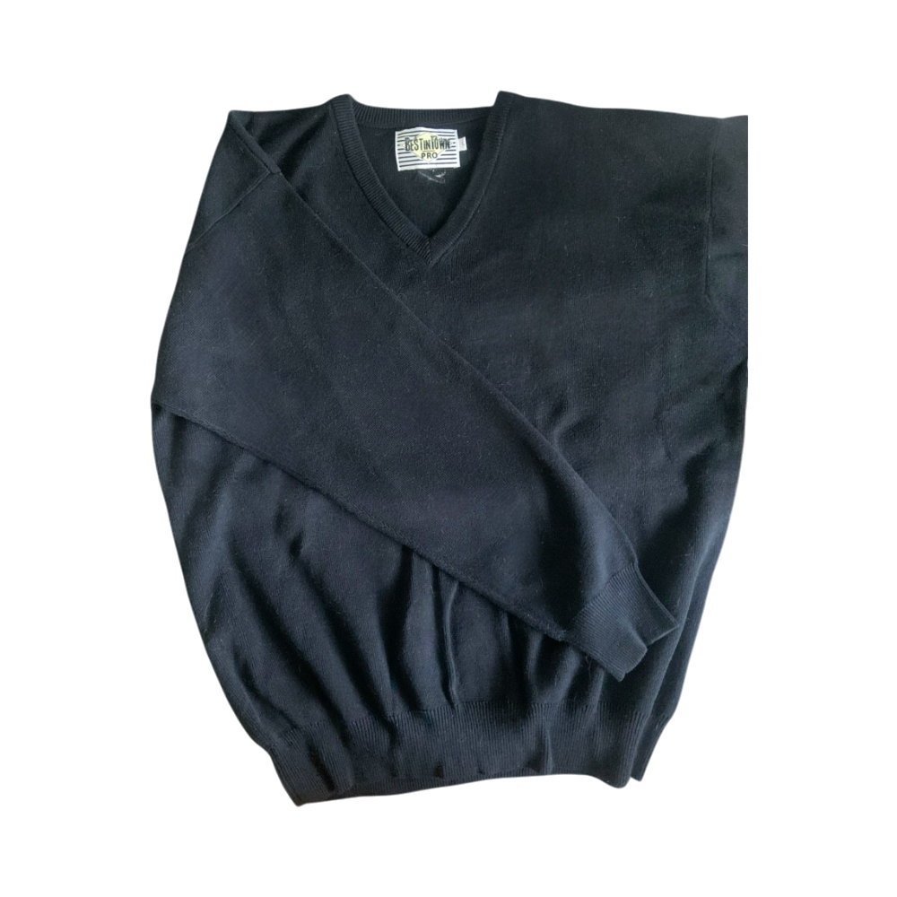 Musta V-aukollinen neule, klassinen ja yksinkertainen.