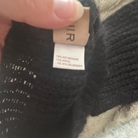 Pehmeä ribbineuleinen pipo ja kaulahuivi. Huivi on noin 118cm pitkä. Mohair näkyy pinnassa.