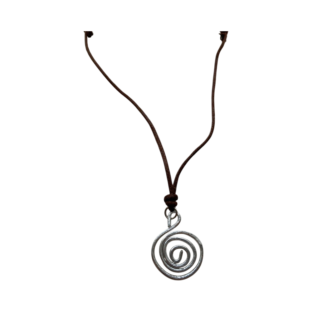 Kaulakoru isolla spiraalilla, liukusolmut joista voi säätää korun pituuden itselle sopivaksi