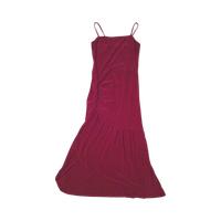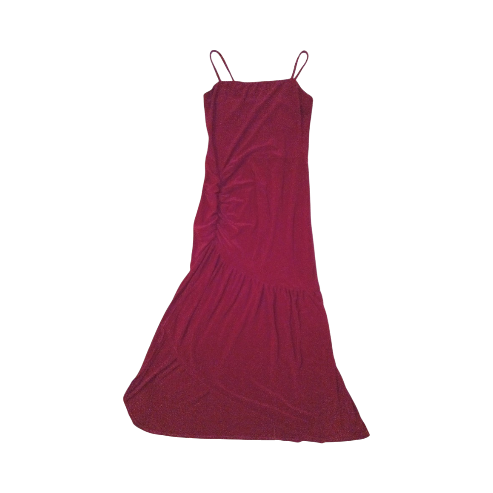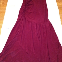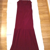 Ihonmyötäinen viininpunainen mekko. Ei maximekko. Helmassa slit ja kyljessä rypytys. Takana vetoketju. Venyy