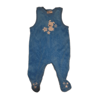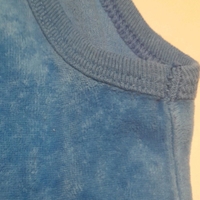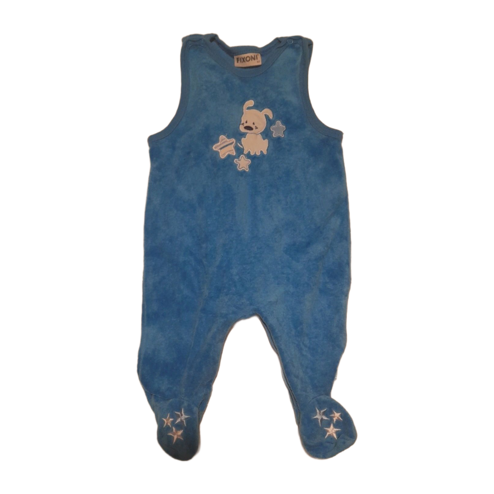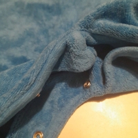 Siniset potkuhousut, velour. Koko 62cm. Merkki Fixoni. Ylimmän/keskimmäisen haaranepparin vastakappale on lähtenyt irti (kuva 3). Vasemman kainalon alta on ommel ehkä millin verran purkautunut, mutta on saattanut olla tuolla tavalla ihan kaupasta ostettaessakin (kuva 4). Kangas siistissä kunnossa. Pesu 60 astetta.