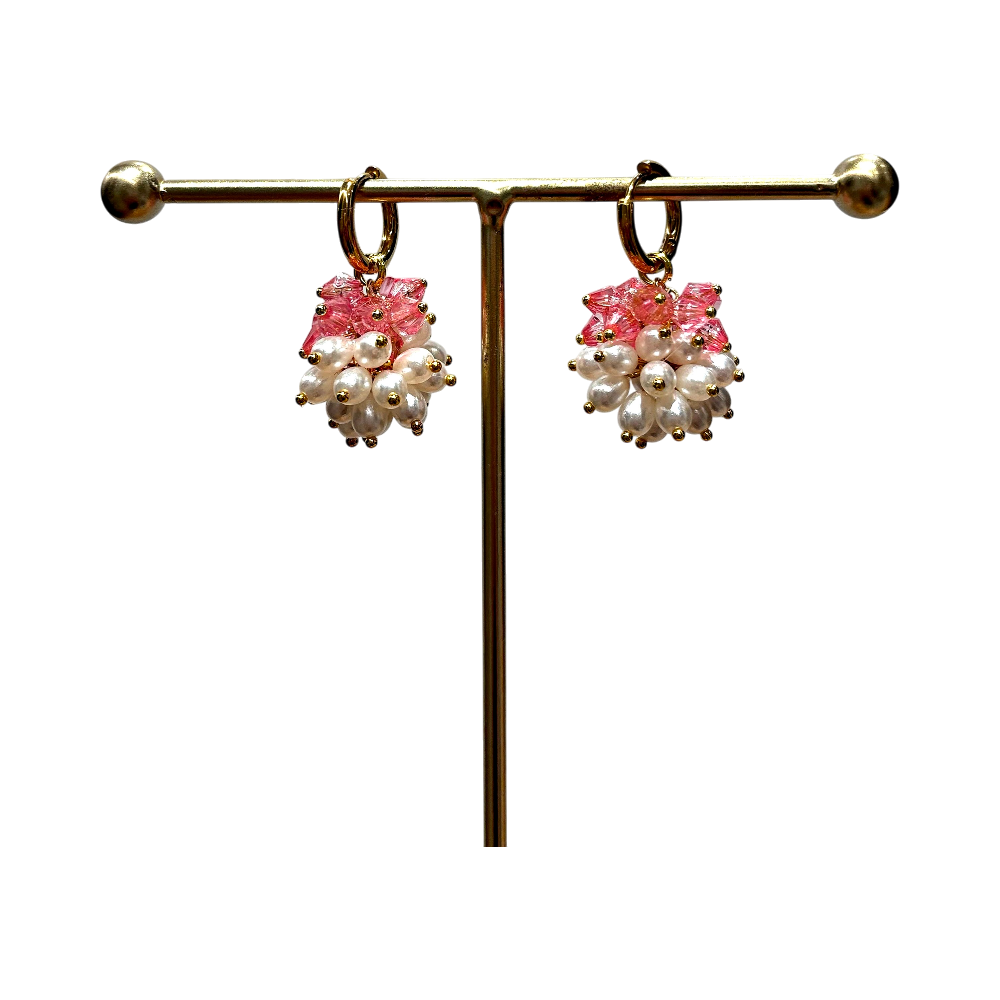 kristalli/ helmirypäs-korvikset pinkki-valkoisena