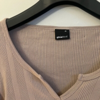 Hyväkuntoinen beige pitkähihainen paita, v-aukko.