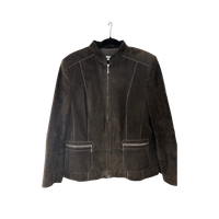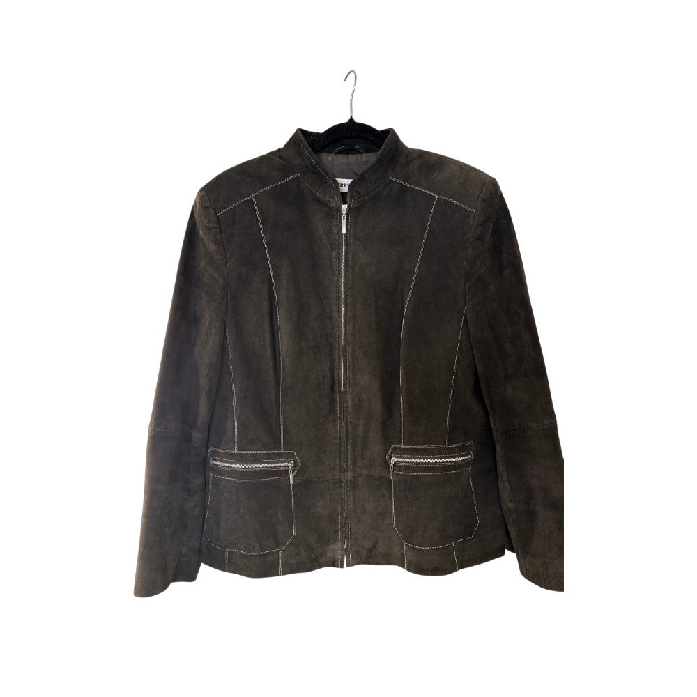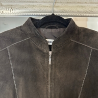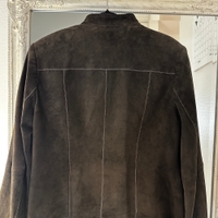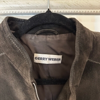 Tummanruskea mokkanahkainen takki. Edessä kivat vetoketjutaskut. Merkki Gerry Weber. Ei koko lappua mutta sanoisin M-L kokoa, mitat löytyy kuvista. Nahka on hyvässä kunnossa, sisävuoressa on pienet paikkaukset (ei vaikuta käyttöä).