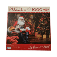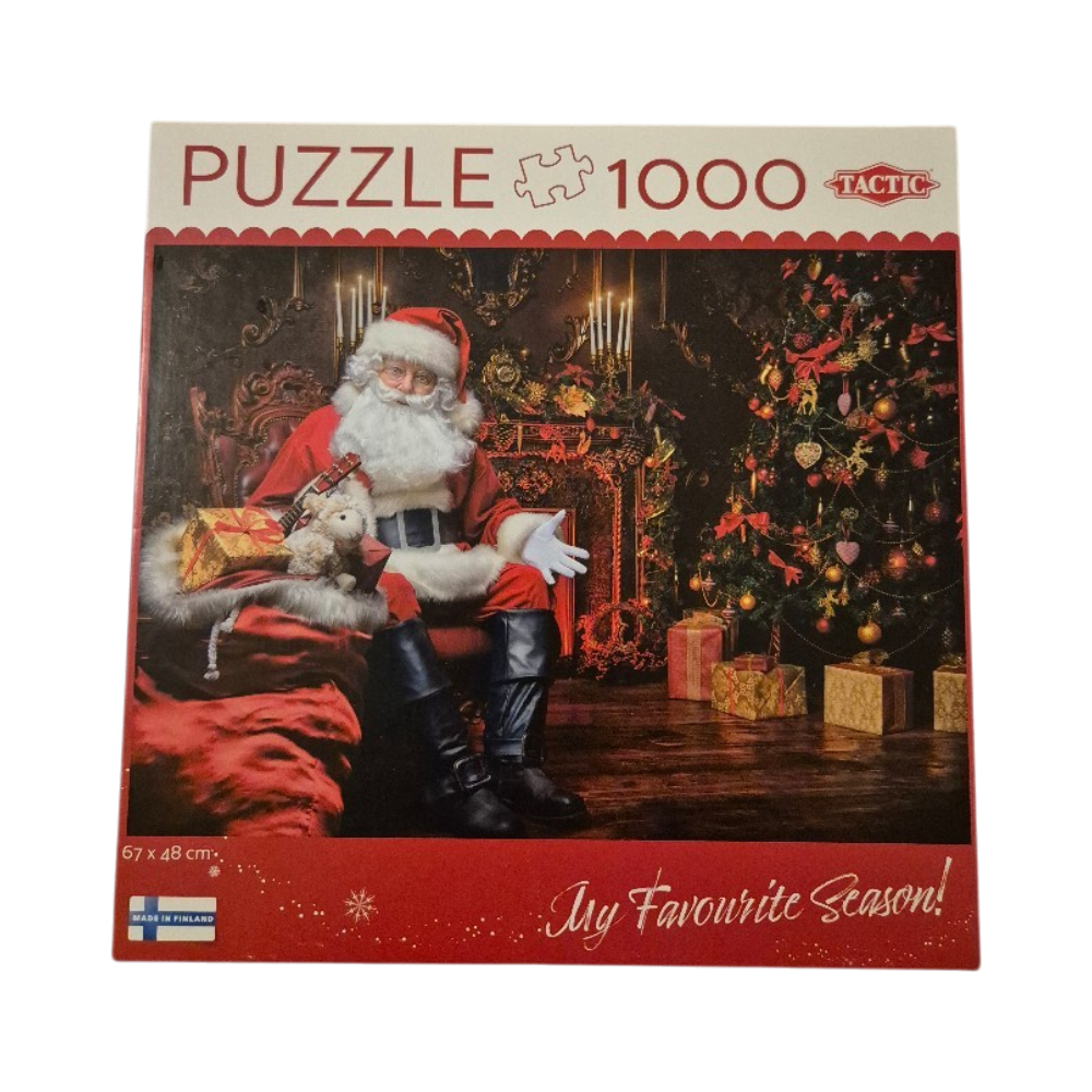 1000-palainen joulupuzzle, kuva Joulupukista ja kuusesta.
