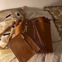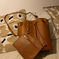 JILA käsilaukku pidemmällä hihnalla. väri: kameli. Alkuperäinen hinta 310€.
