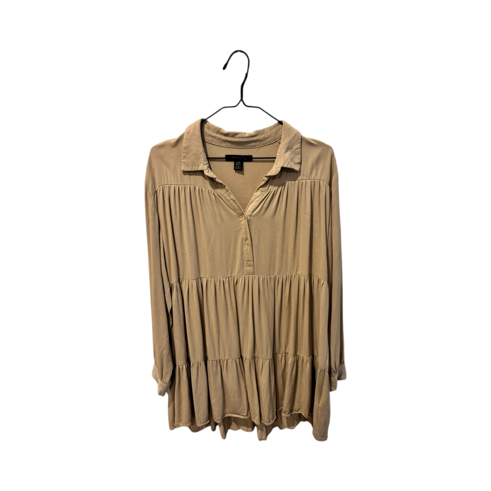 Beige tunika. Napit rinnassa. Hihansuissa myös napit. Istuu myös M-kokoiselle rennon mallin takia.