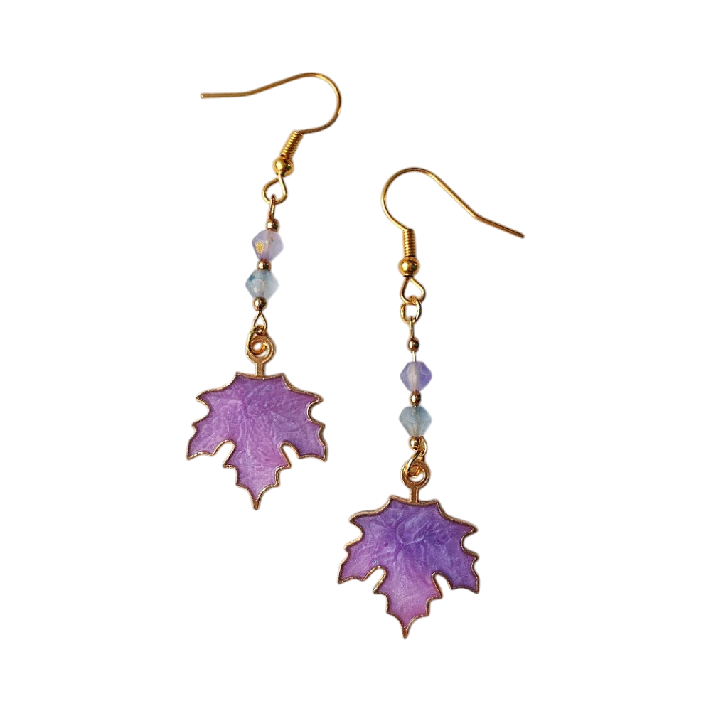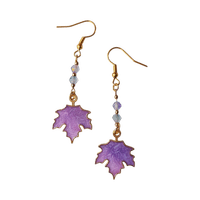 Vaahteranlehti-korvakorut lasihelmillä. Nikkelittömät. Korkeus koukun kanssa noin 6 cm.