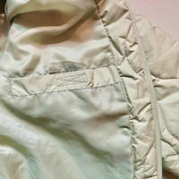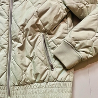 Beige tikattu bomber-takki vetoketjullisilla taskuilla.