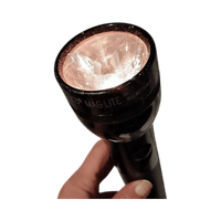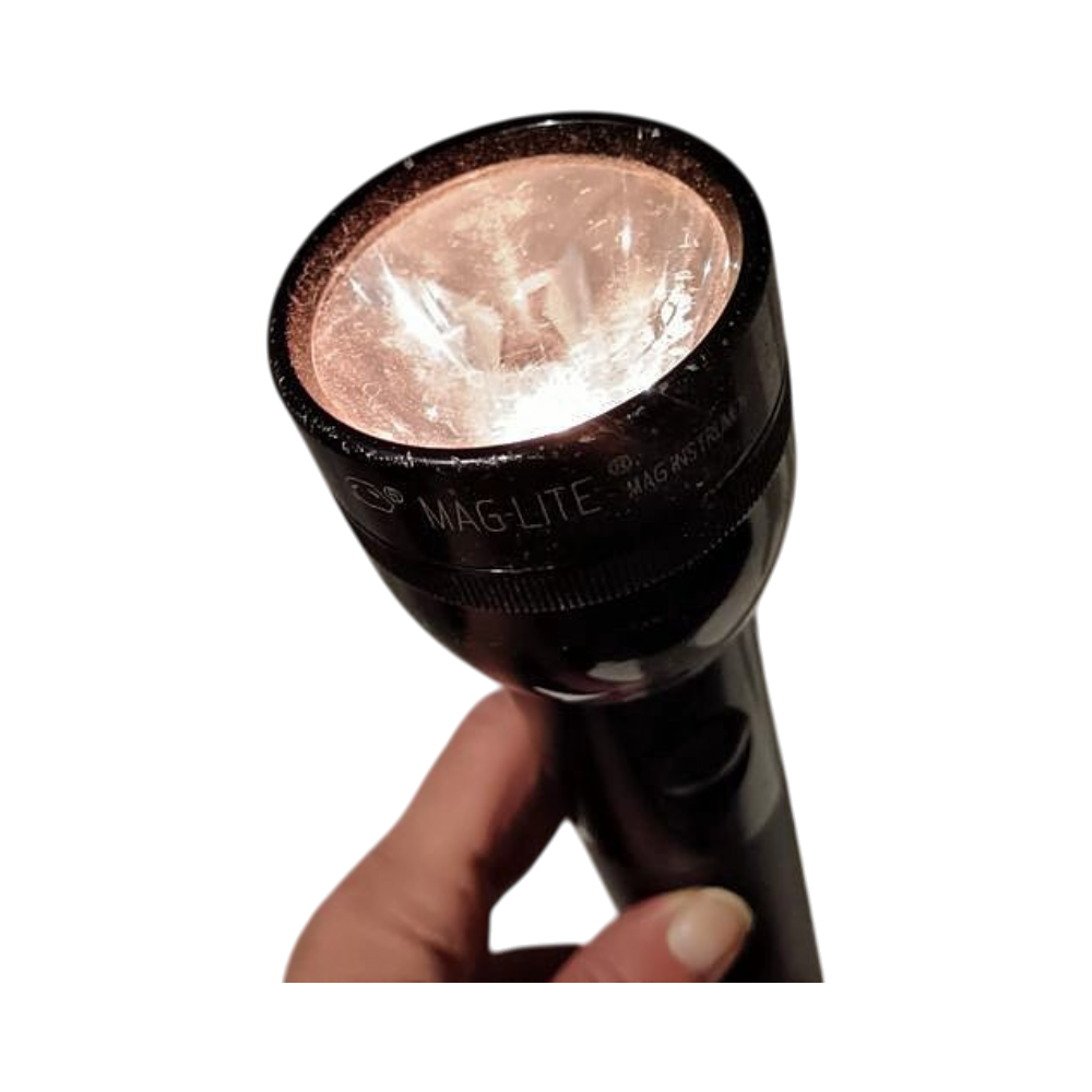 Mag-Lite original puolimetrinen lamppu, joka ei kyllä mahdu taskuun, mutta "olalle vie"