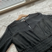 Vähällä käytöllä ollut musta Zaran shortsipuku. Yläosa ja hihat läpikuultavaa kangasta, kuminauhavyötärö, mukavat rennot lahkeet. Koko M, vastaa mielestäni enemmän S