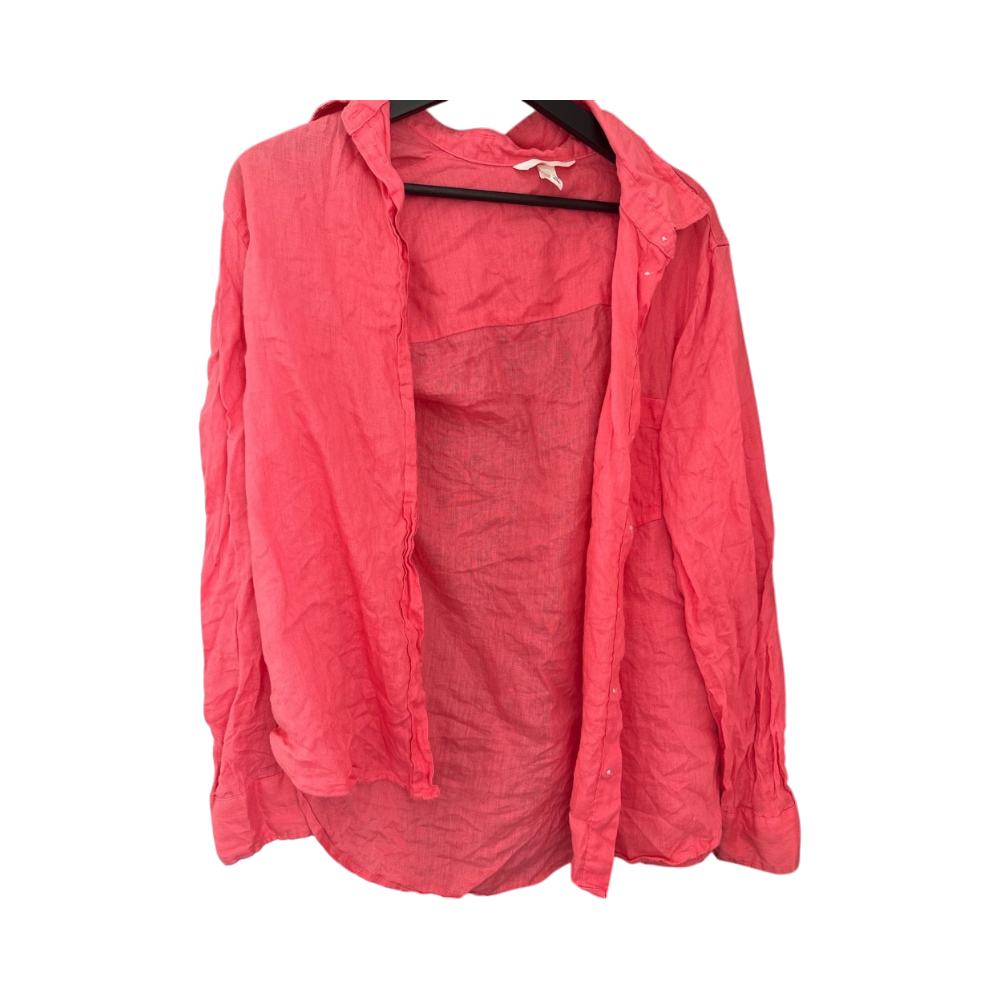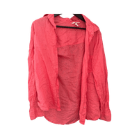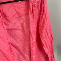 Kevyt 100% pellavainen naisten paita, napit edessä. Hintalappu ehditty leikata pois. Väri kirkas pinkki, mutta ei niin neon räikeä tässä pellavapaidassa vaikka kirkas onkin. Edessä rintatasku. S kokoiselle väljempi. Sopii m koon käyttäjälle myös hyvin.