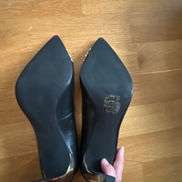 Nahkaiset avokkaat, kärkiosassa kullanväriset niitit. Uudet, kokeiltu muutamaan otteeseen, mutta itselle liian suuret, virheostos. Koko 9 1/2 jenkki kokoa.