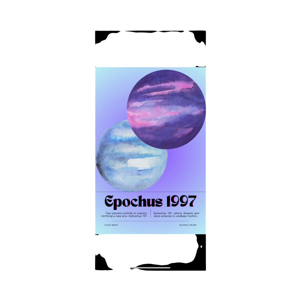Värikäs avaruusteemainen taidejuliste, printti seinälle.