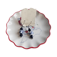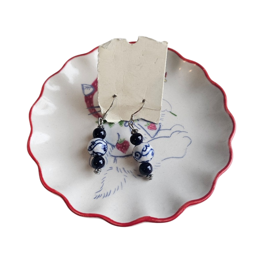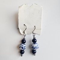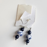 Dangling earrings with blue-and-white porcelain patterned beads.