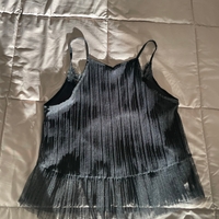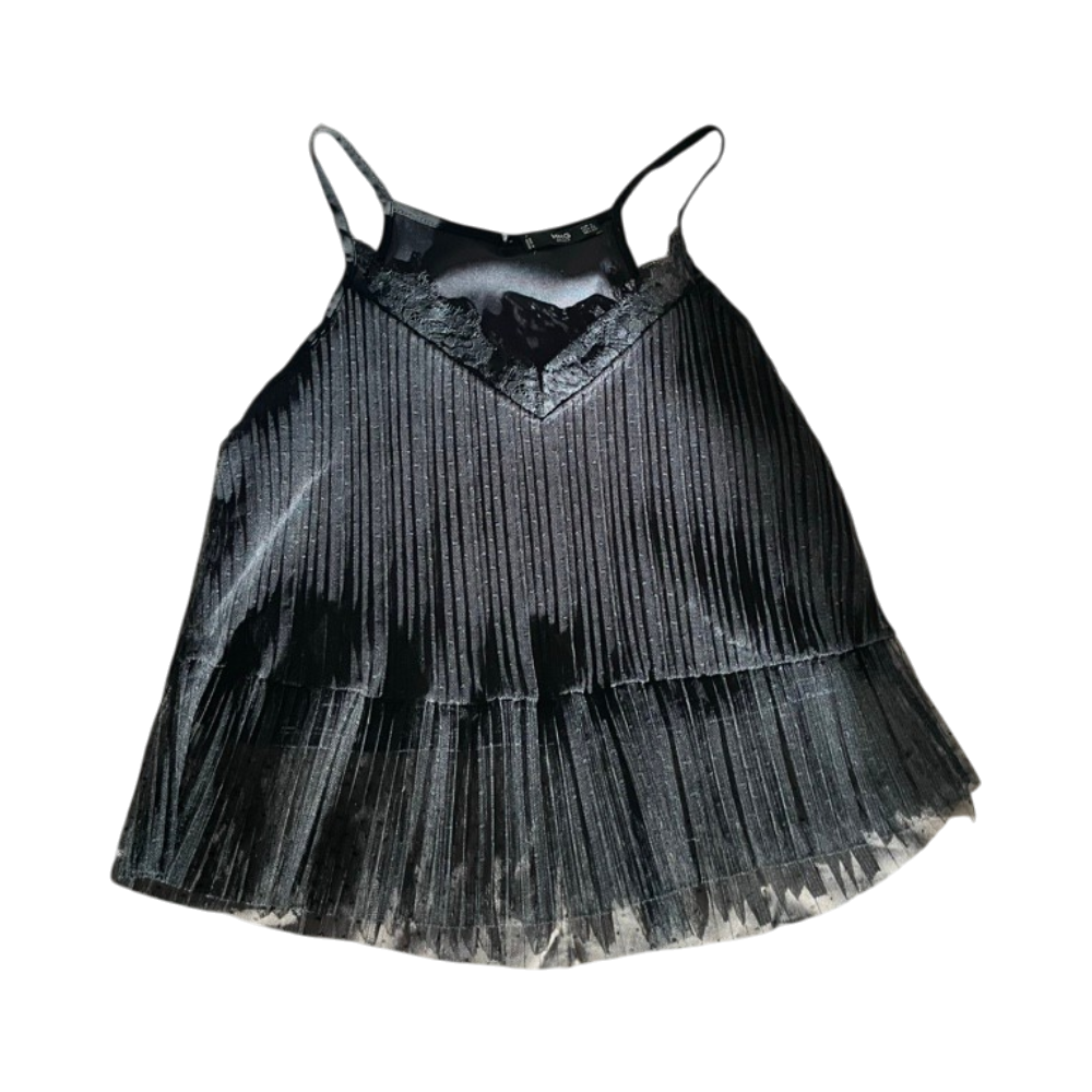 Hieno musta sifonkitoppi pitsiyksityiskohdilla, koko S. Pitsissä vähän kulumaa edessä