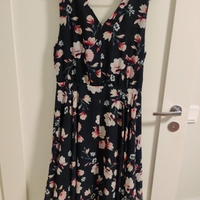 V-mallinen, midipituinen ja kietaisumallinen kukkamekko vyötäröllä laskokset. Nätti mekko kesään tai lomamatkalle. Vyötärönauha puuttuu, mutta voi laittaa halutessaan kapean vyön.