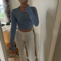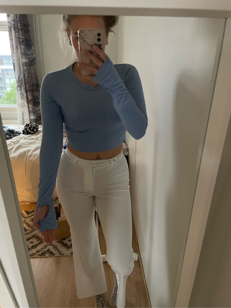 Naisten vaaleansininen pitkähihainen paita peukalonreiällä