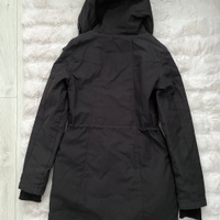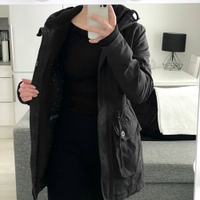 Nauhojen kiristimet ovat vähän lähteneet ”aukeamaan” ja tästä myös kuva. Takin takahelmassa logolappu myös kulunut reunoista. Näitä pieniä yksityiskohtia lukuunottamatta takki erittäin hyvässä kunnossa!