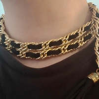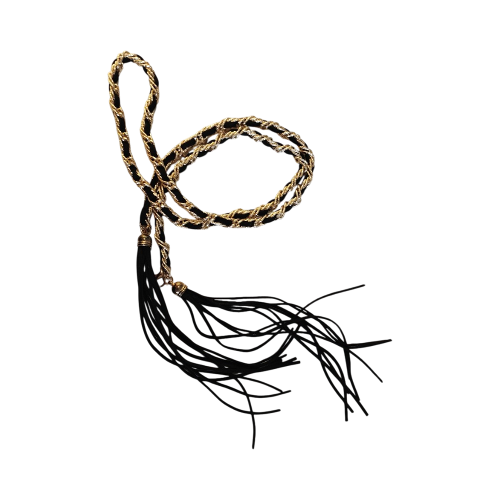 Monirivinen letitetty kaulakoru hapsuilla, näyttävä choker-tyyli.