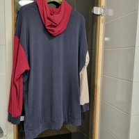 Hieman sininen väri haalistunut uudesta vaikka ei ole montaa kertaa pesty. Tämä asu jäänyt vähälle käytölle, joten erittäin siisti. Mitat on otettu venyttämättä. Kangas joustaa, koska on puuvillaa/elastaania.