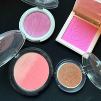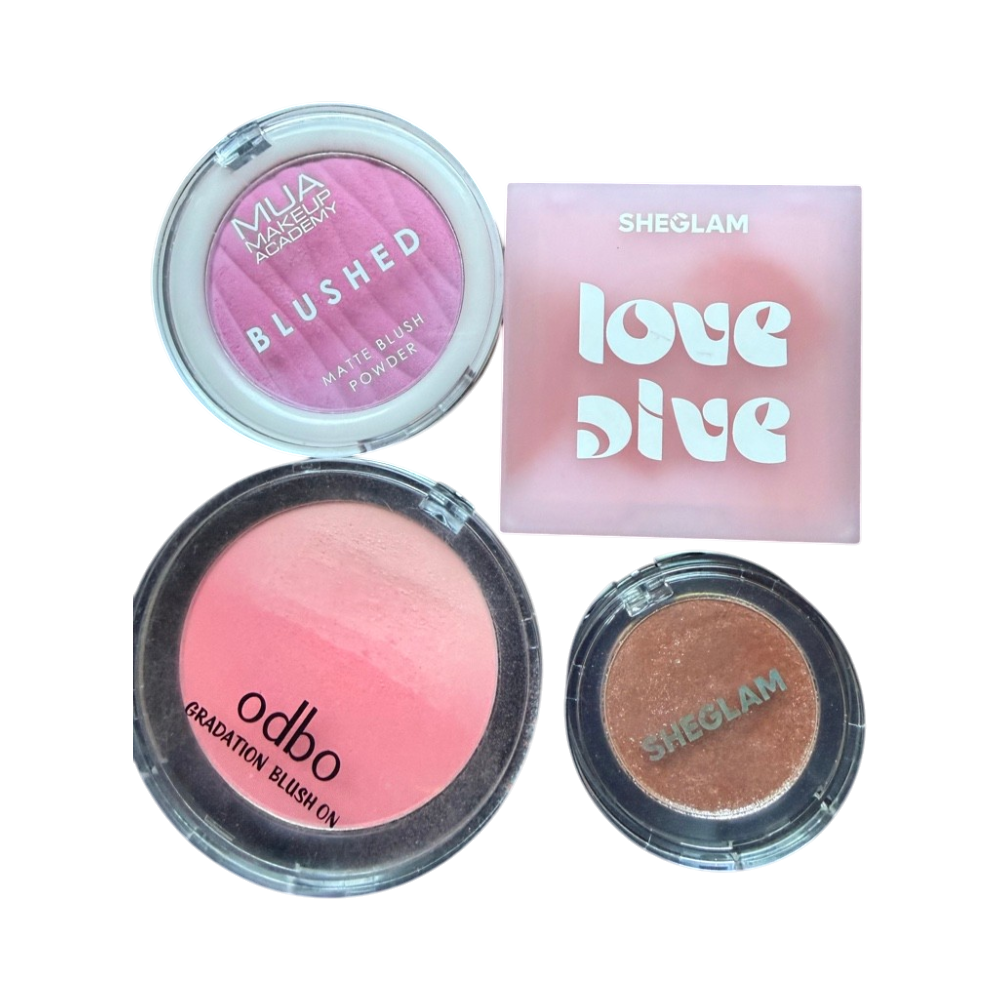 Sekoitus poskipunia ja kimaltavaa luomiväriä, käytettyjä.