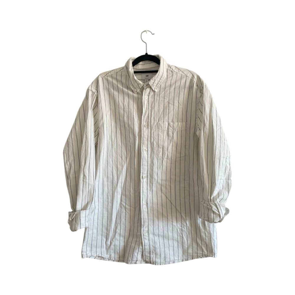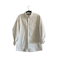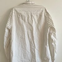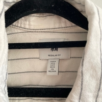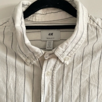 Valkea mustilla raitoja, napitettu kaulus, hyvä kunto.