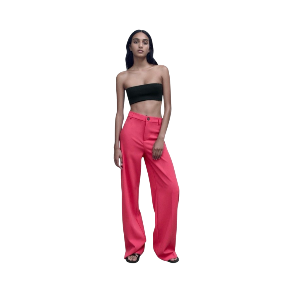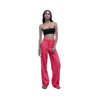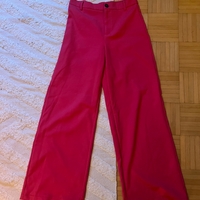 Fuksian väriset korkeavyötäröiset leveälahkeiset housut, hyväkuntoiset. Zara M (itselleni sopivat S-kokoisena).