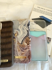 Stylish phone cases for iPhone X, XS and 11 pro as they all fit the same ones! One with card holder, some from iDeal of Sweden and a bumper.
