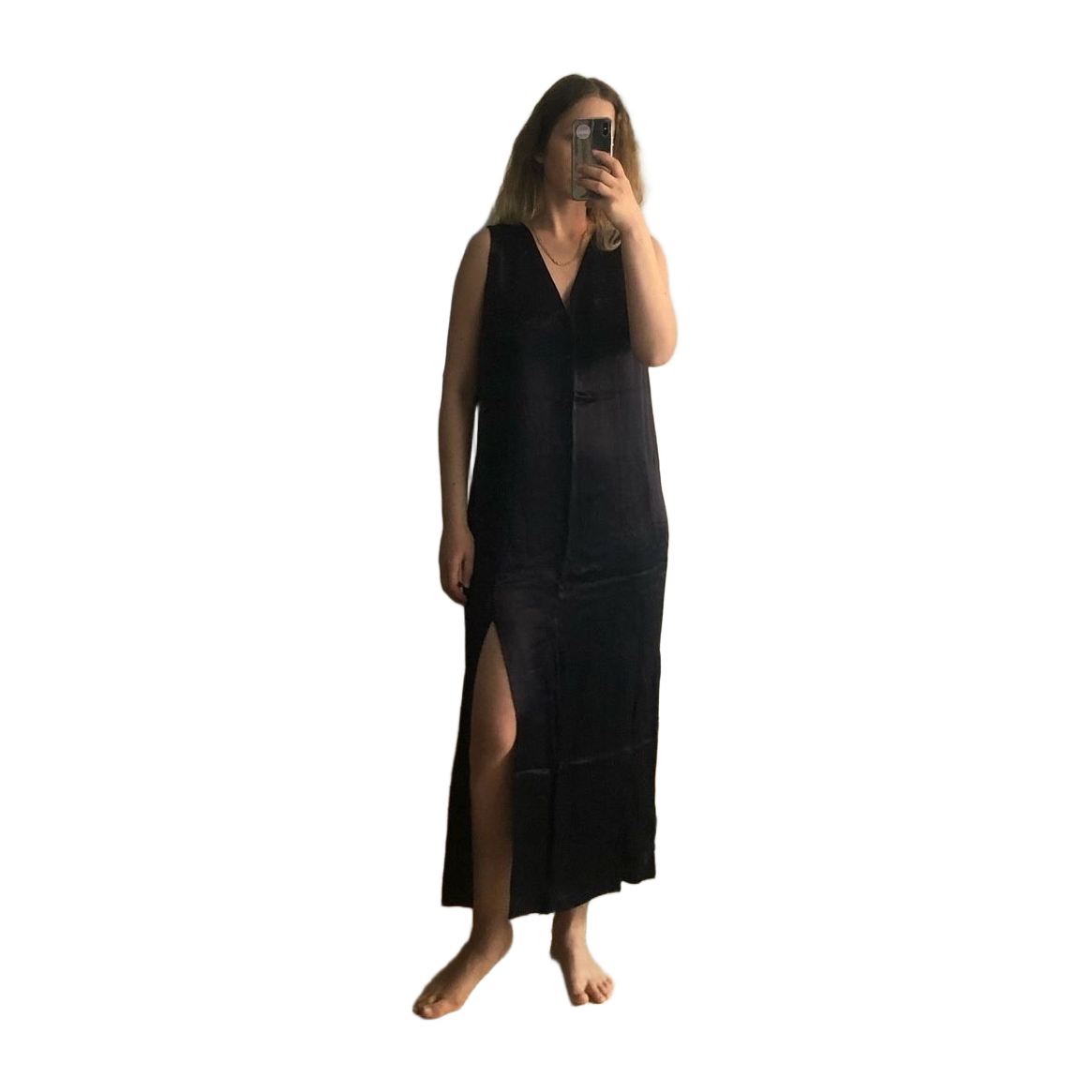 Mango premium collection syvän tummansininen juhlamekko, jossa on kiiltävä ja hieman eläväpintainen kangas. Edessä helmassa iso halkio, takana selässä myös upea yksityiskohta, joka paljastaa hieman selkää. Koko M, joustaa hieman.