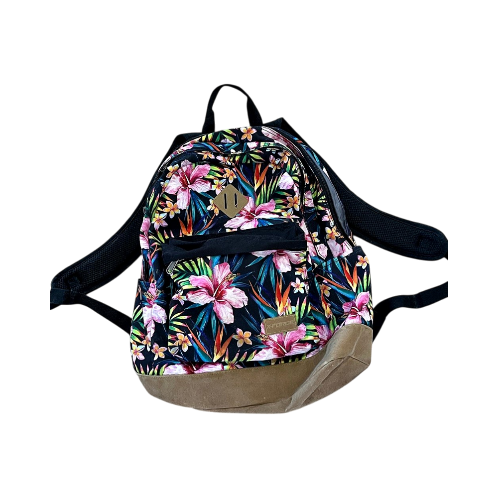 Kukkakuvioinen reppu. Ehjä ja siisti, yhteystietolappu poistettu sisältä.