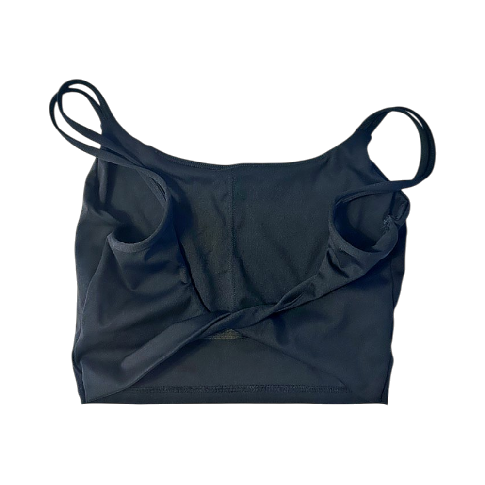 Selästä avoin treenitoppi. Kerran käytetty. Koko M mutta enemmän vastaa kokoa S. Toppiin saa lisättyä irroitettavat toppaukset.