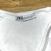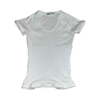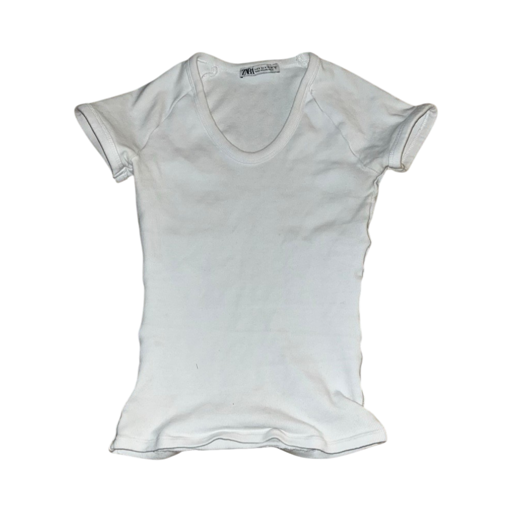 Valkoinen ribbityylinen lyhythihainen toppi, slim fit.