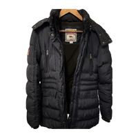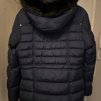 Lämmin parikertaa käytetty toppatakki, koko L. Tummansininen ja todella lämmin, hyvät taskut ja kiva karvahuppu.