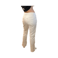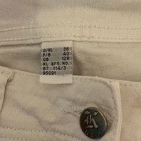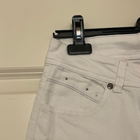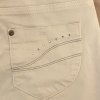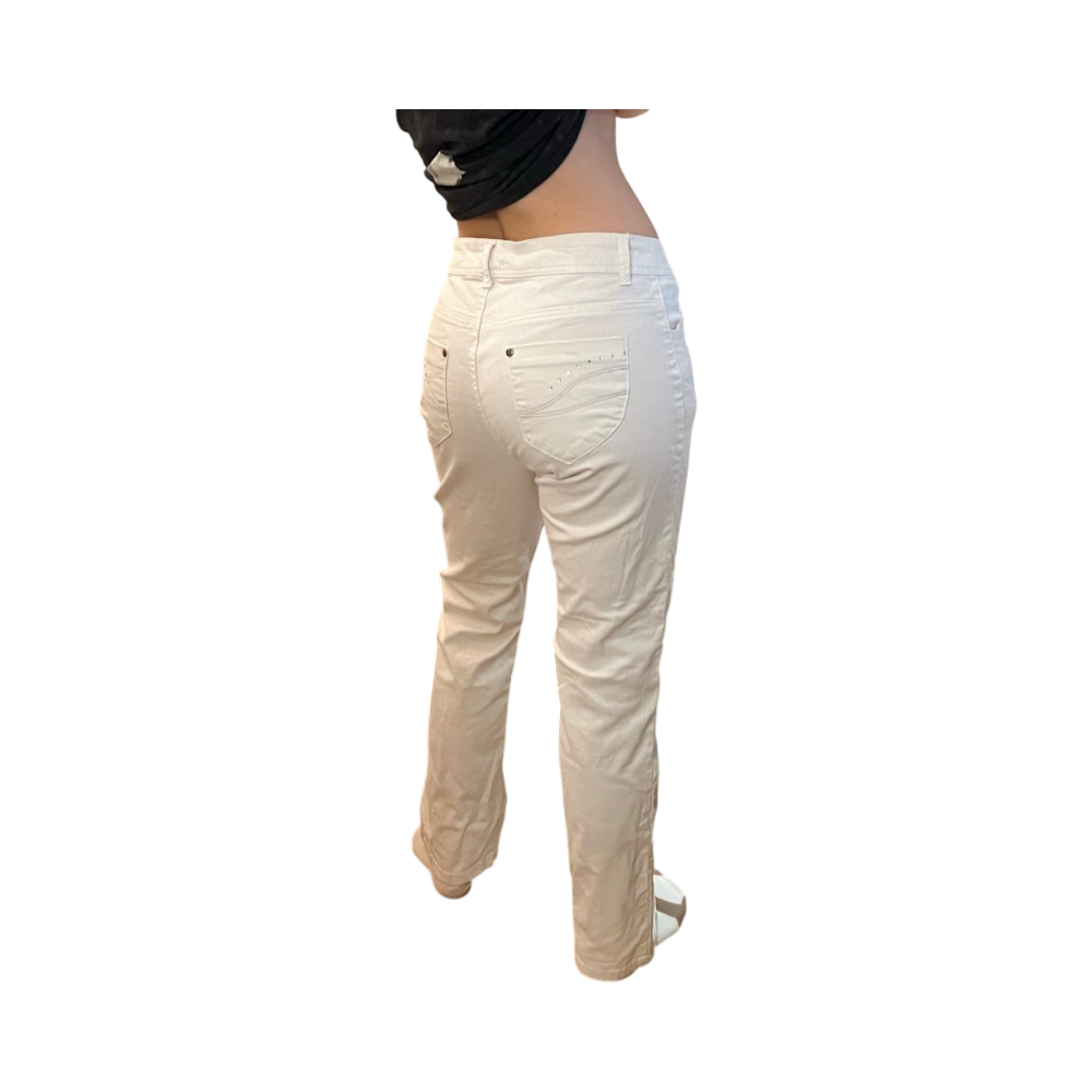 Vaaleat puhtaat suorat farkut taskuhelmikoristeilla.