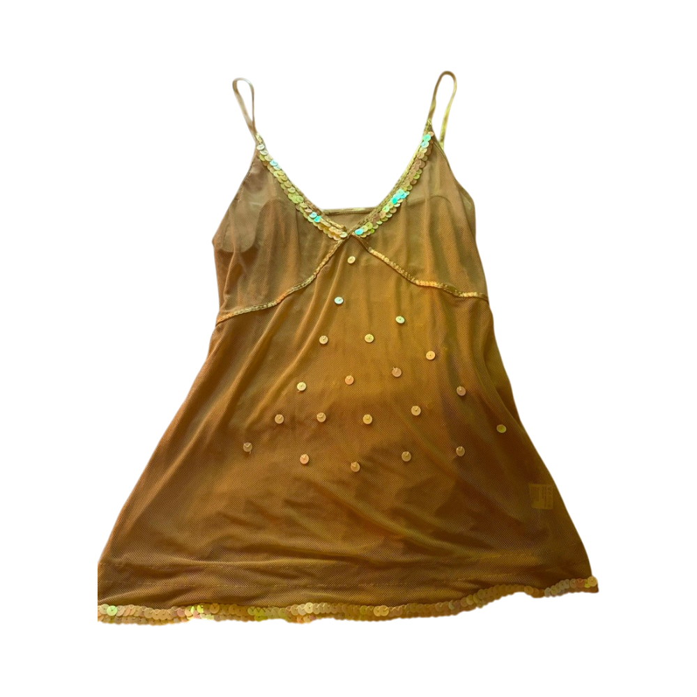Ohut verkkomateriaali, paljettiyksityiskohdat, hihaton toppi.