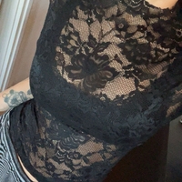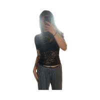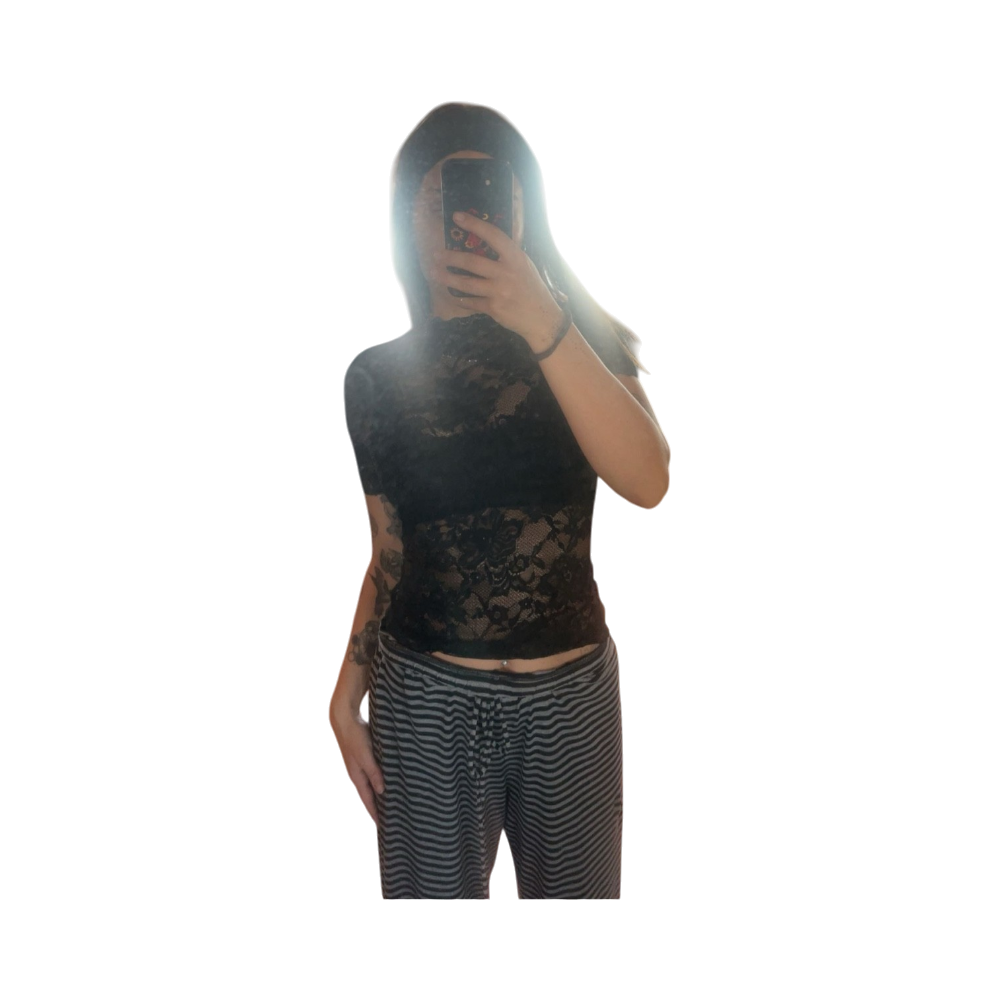 Lyhyt, läpikuultava pitsitoppi lyhyillä hihoilla, itse tuunattu #y2k #lace #alternative #avantgarde